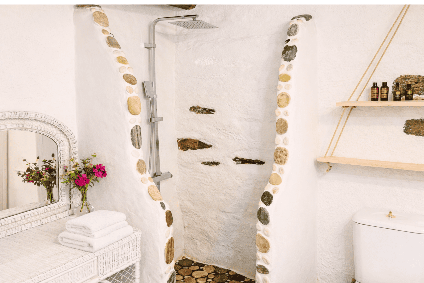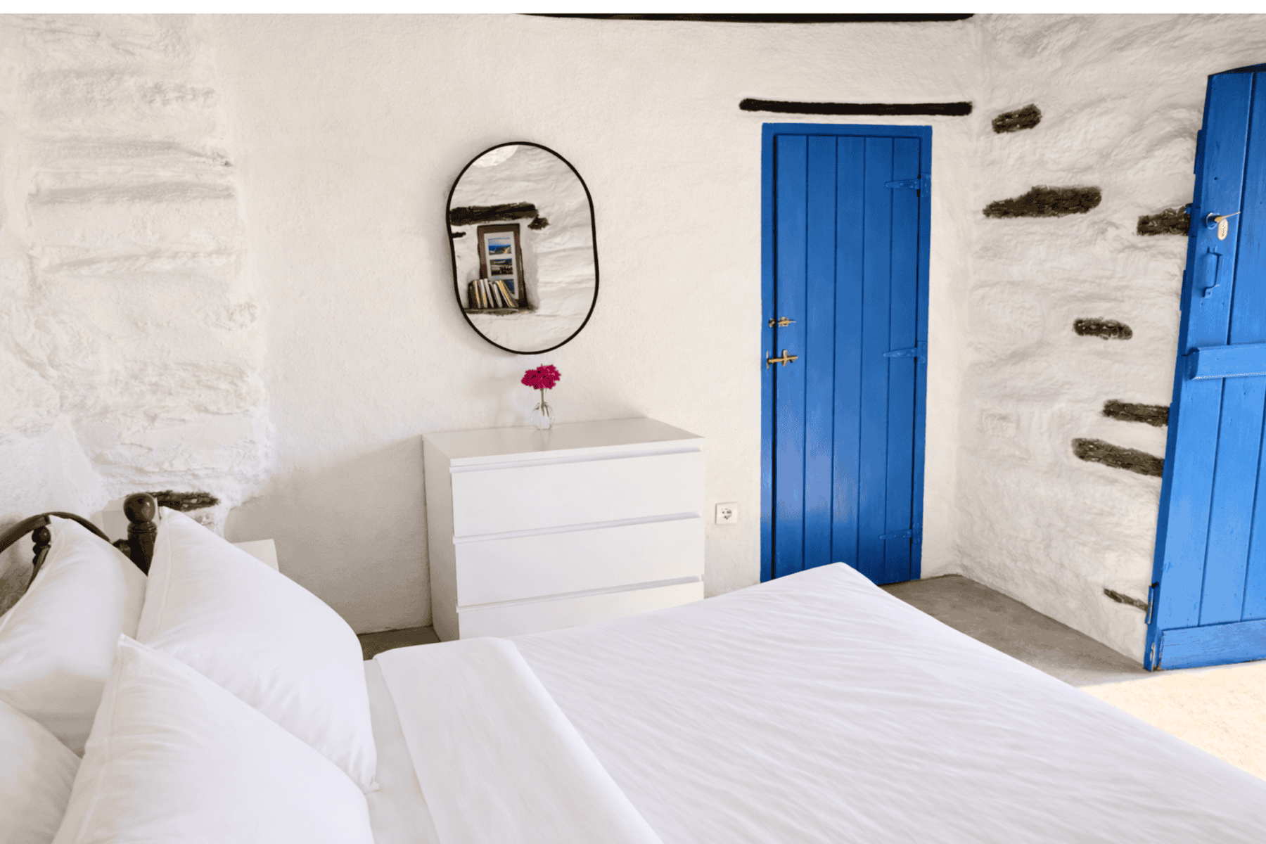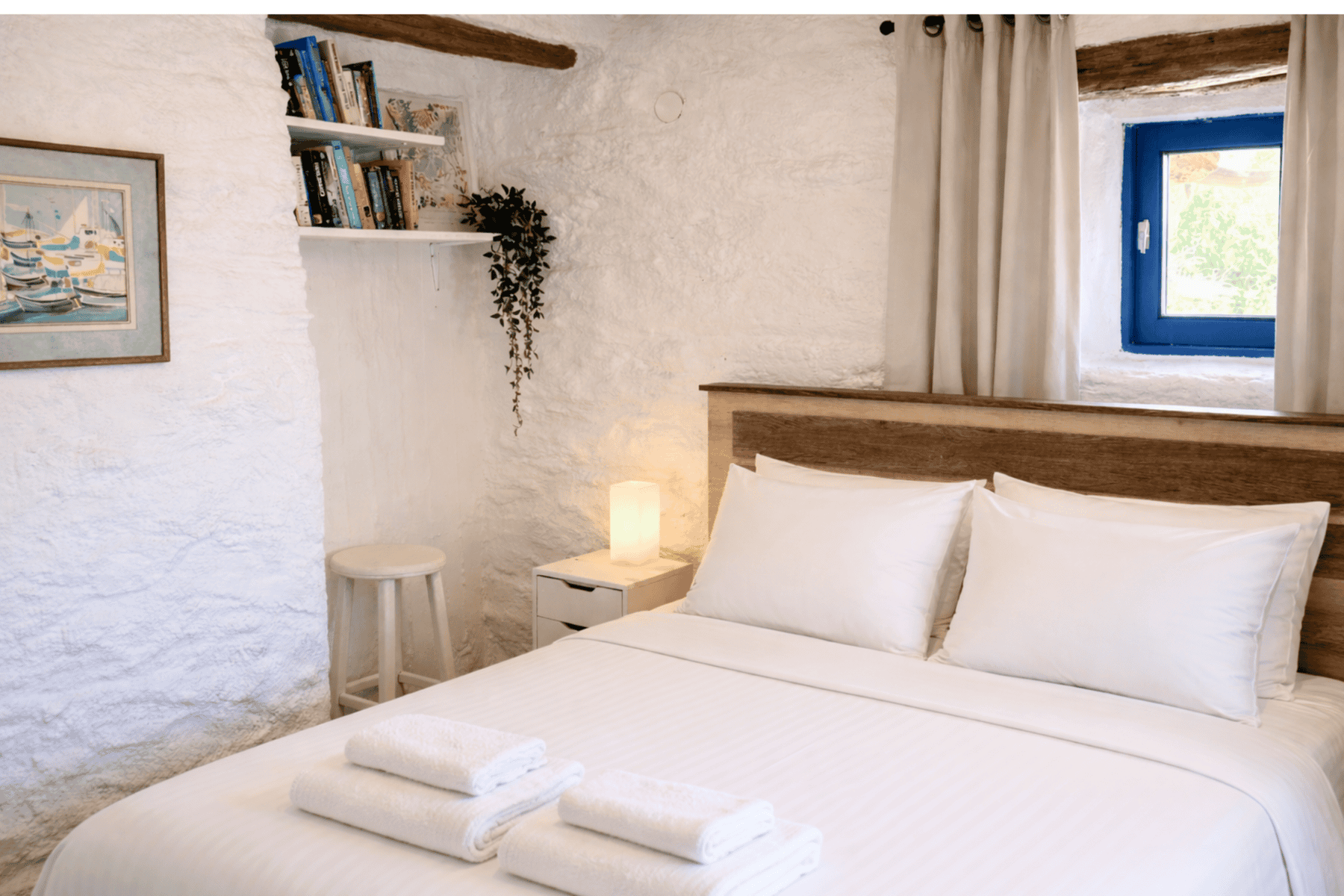 Die Stone Suite befindet sich auf der mittleren Ebene des Kotseli-Anwesens und ist ein gemütlicher Rückzugsort mit zwei Schlafzimmern, der für Paare, kleine Familien oder Freunde konzipiert ist. Mit in Stein gehauenen Schlafzimmern im Höhlenstil und traditioneller kykladischer Architektur bietet die Suite eine einzigartige Balance aus rustikalem Charme und modernem Komfort.