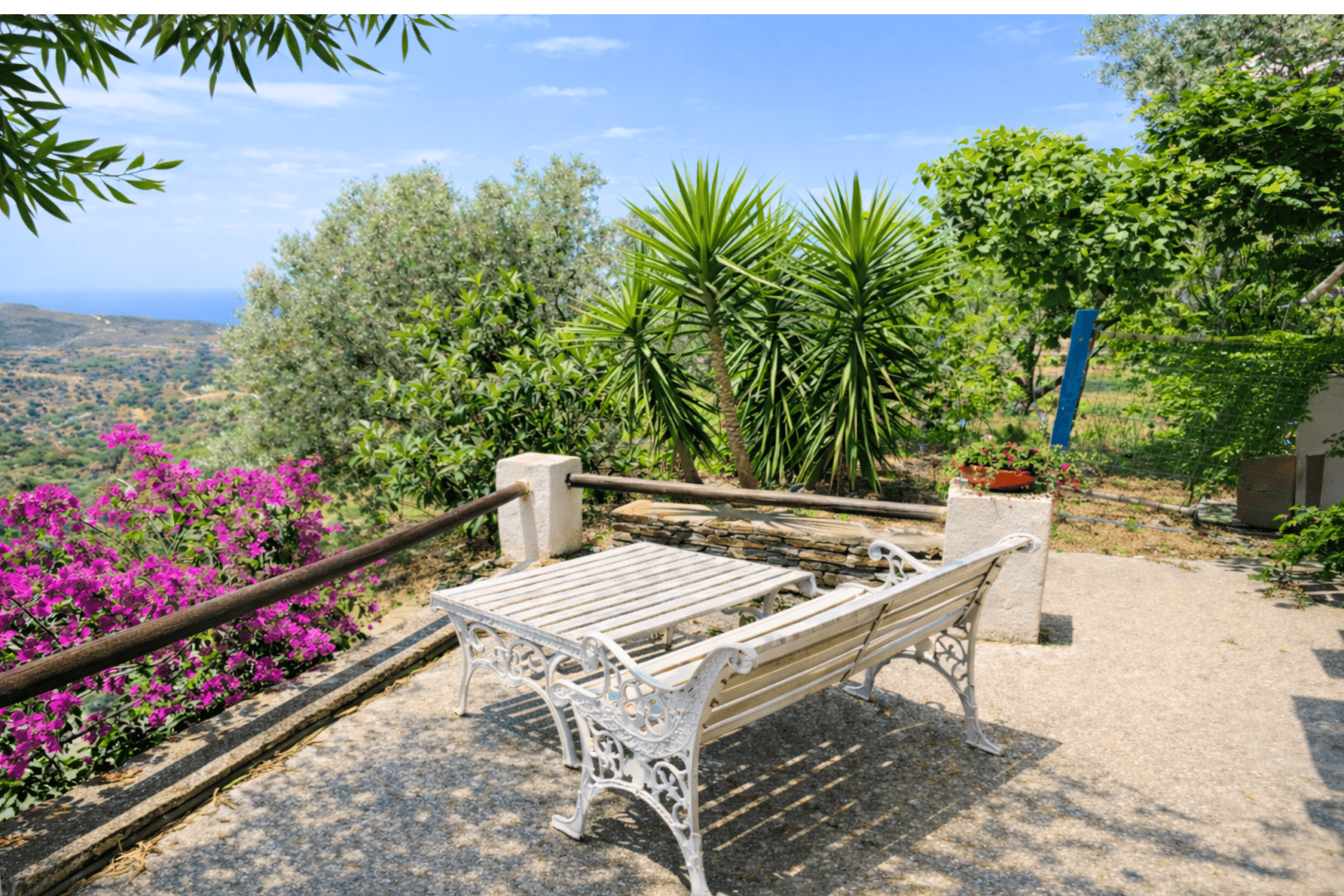 Genießen Sie von den Terrassen einen atemberaubenden Blick auf das Tal, das Meer und unvergessliche Sonnenuntergänge und entspannen Sie in einer ruhigen, authentischen Umgebung, die tief mit der Insel verbunden ist.