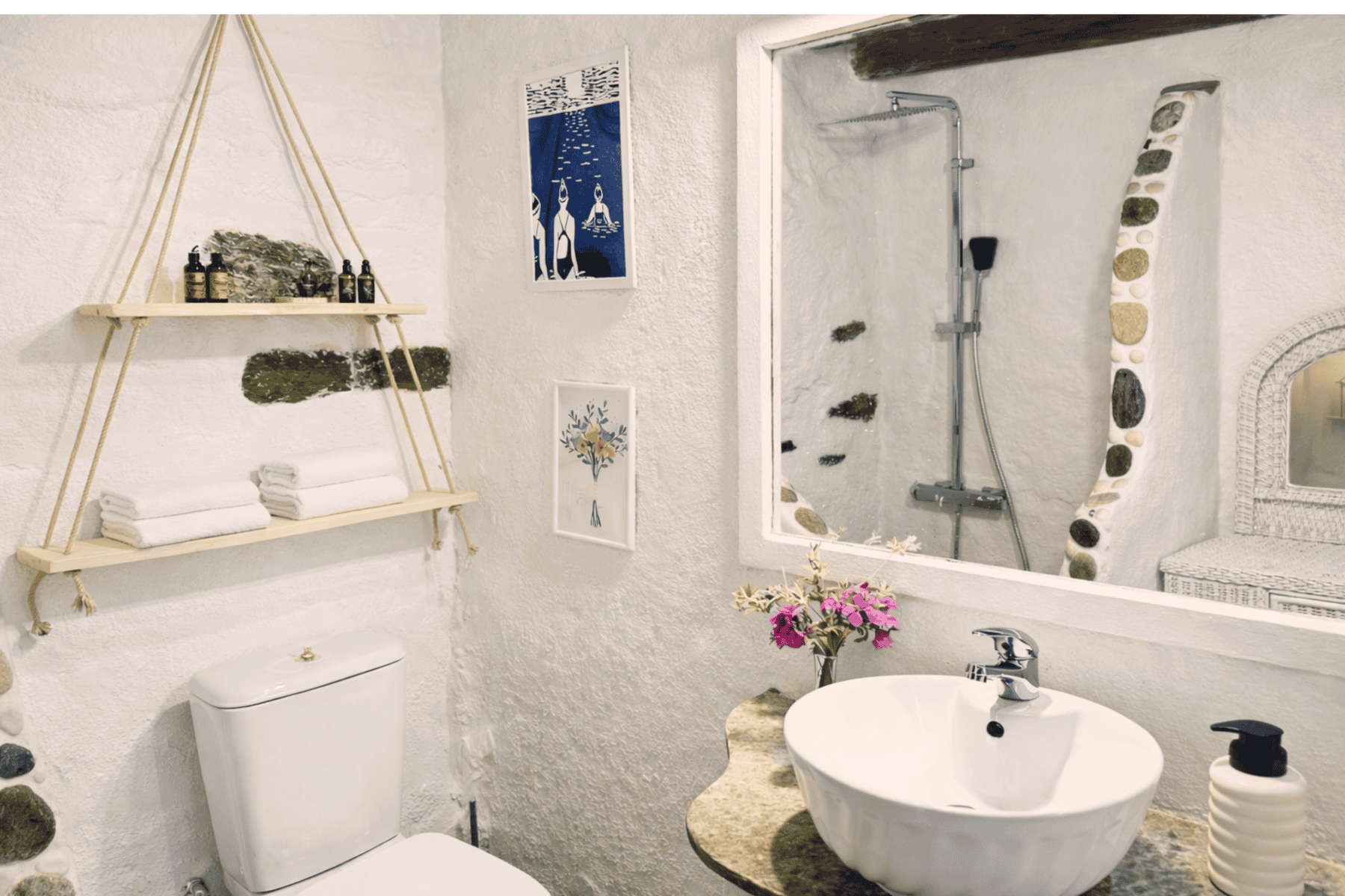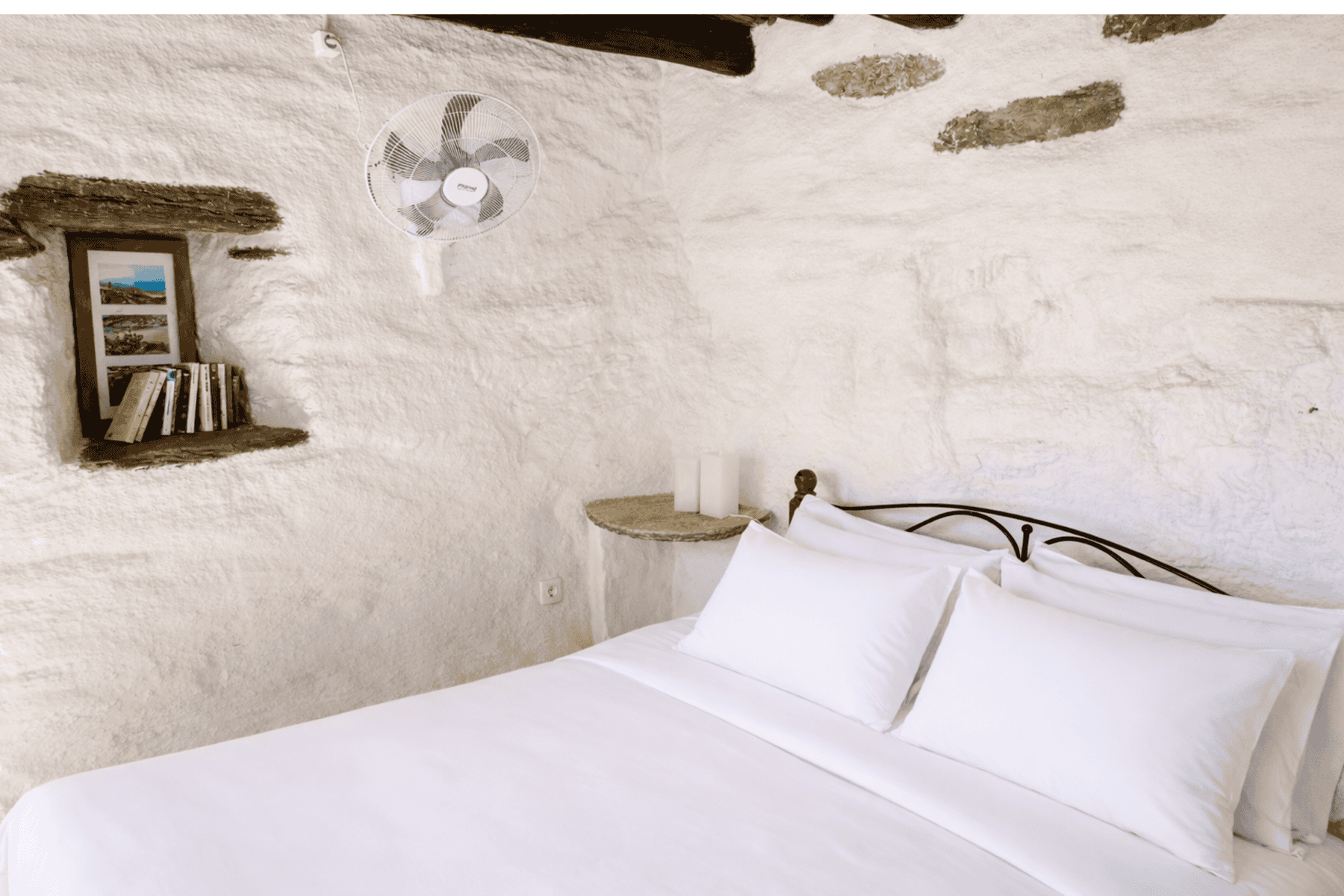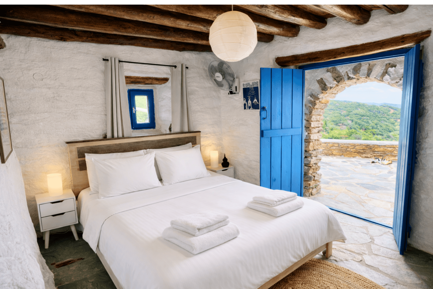 Die Stone Suite bietet ein authentisches Andros-Erlebnis und verbindet traditionellen Inselcharakter mit modernem Komfort. Wachen Sie in natürlich kühlen Schlafzimmern im Höhlenstil auf, genießen Sie Kaffee auf Ihrer privaten Terrasse mit Blick auf das Tal und erkunden Sie die nahegelegenen Strände und Wanderwege. Egal, ob Sie hier sind, um sich zu entspannen, aus der Ferne zu arbeiten oder die Insel zu entdecken, die Suite bietet eine ruhige, inspirierende Basis, um sich wieder mit der Natur zu verbinden und zu entschleunigen.